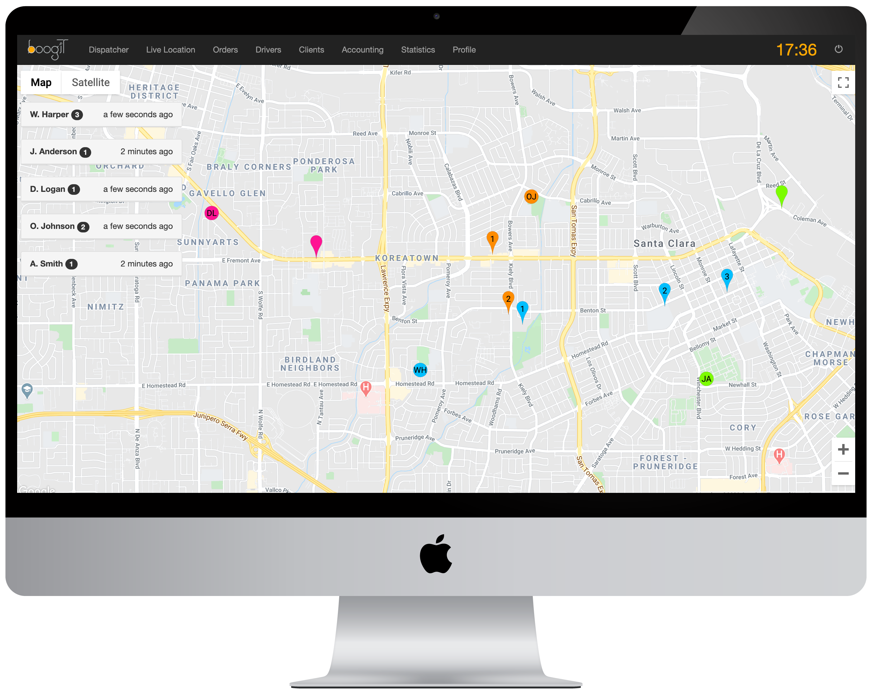 Prin activarea solutiei boogiT Delivery poti eficientiza si usura procesul de livrare, fiecare curier vizualizand pe propriul telefon comenzile ce trebuiesc livrate. Asociaza comenzilor curierilor, creeaza traseul optim si vizualizeaza locatia lor in timp real.